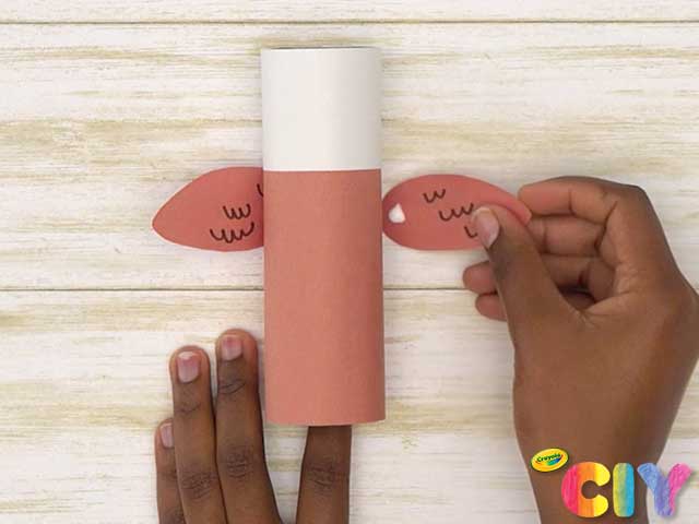 Glue wiggle eyes to front of paper towel roll. Let all glue steps dry 1–2 hours.