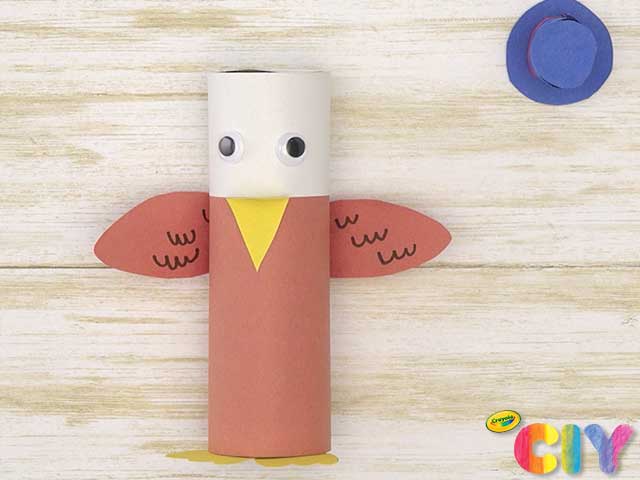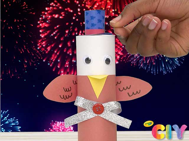 Place hat on top of paper towel roll to complete your patriotic eagle!