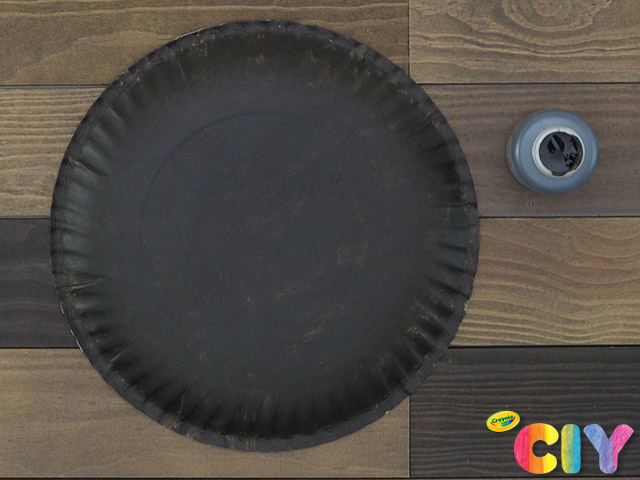 Flip paper plate upside-down and paint. Dry 1–2 hours. Add second coat. Dry 1–2 hours.