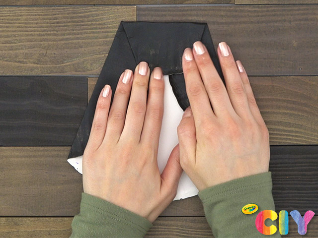 Fold top of paper plate down. Glue to secure.