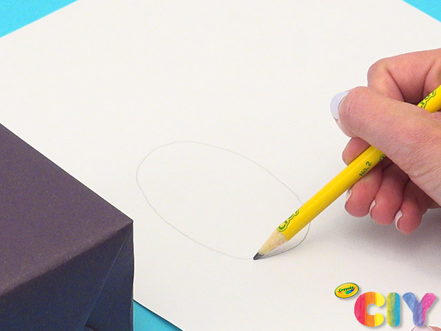 Sketch and cut out construction paper feet. Glue to bottom of box. Let all glue steps dry 15 minutes.