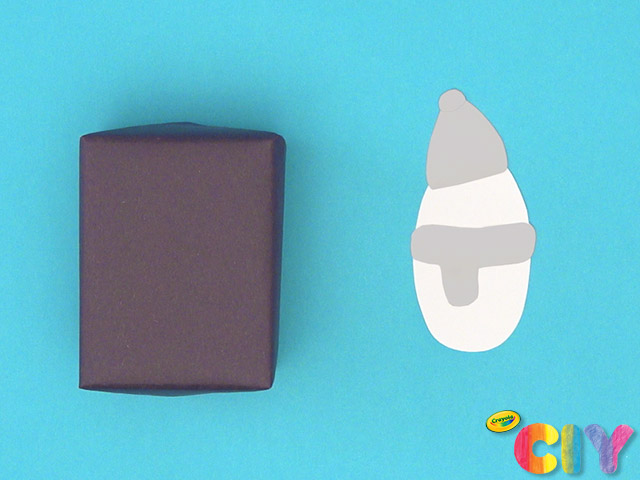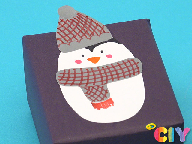 Sketch and cut out construction paper hat and scarf. Glue to penguin body.