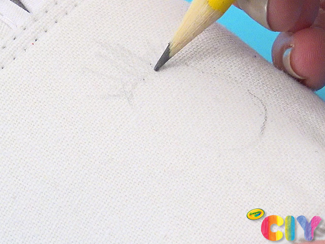 On each canvas shoe, lightly sketch a pineapple outline with pencil.