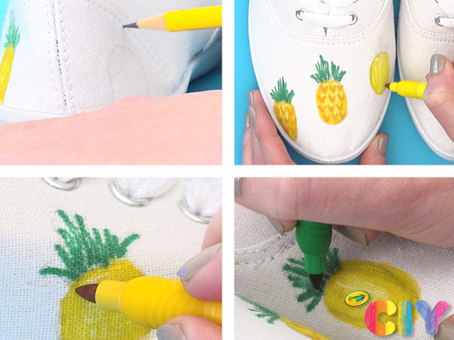 Customize shoes for extra flair! Turn simple canvas shoes into tropical kicks with this pineapple craft.
