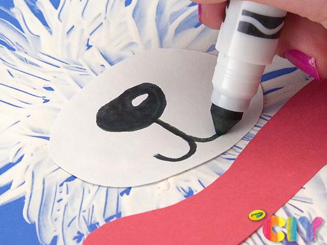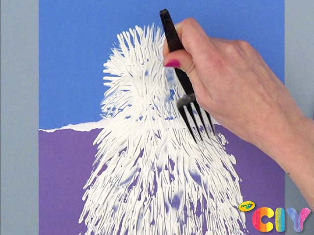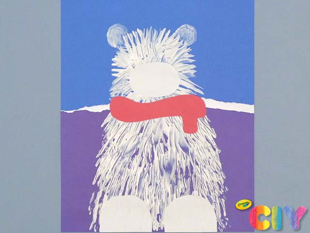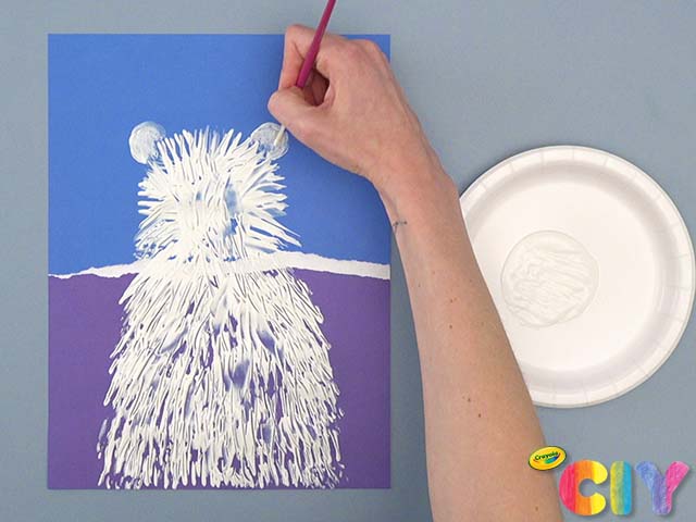 Lightly dip fork in paint and press on cardstock repeatedly to create polar bear head and body.