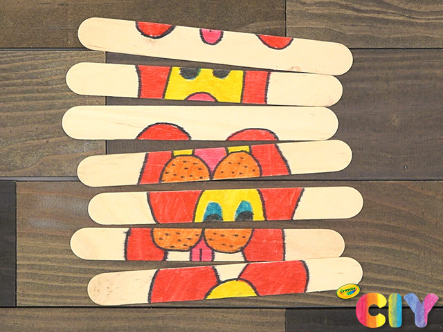 Wanna piece of this? It's game on with our popsicle stick craft that creates an animal puzzle for fun at home. Use Crayola art supplies and other items you already have on hand.