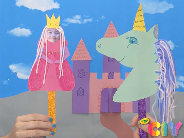Sparkle squad! Make DIY puppets for kids in princess & unicorn silhouettes for magical moments at home.