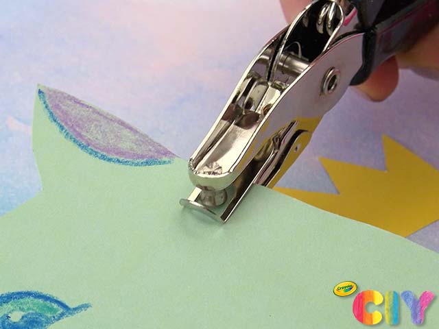 Hole punch unicorn head along back of neck.
