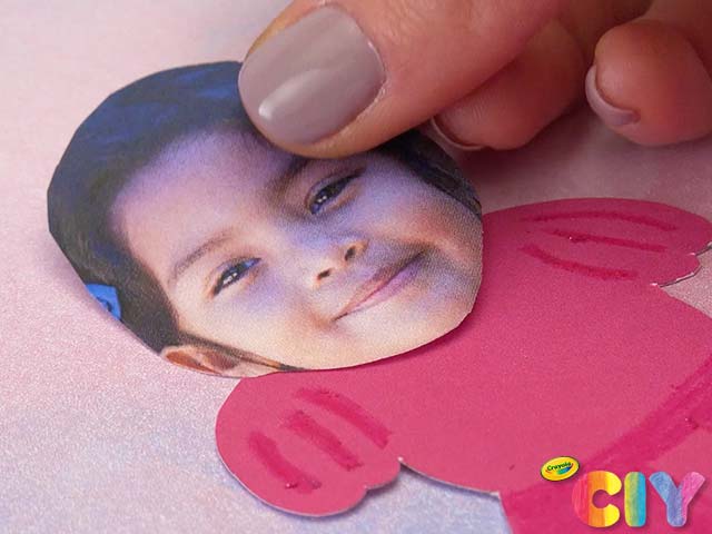 Glue photo of child to dress.