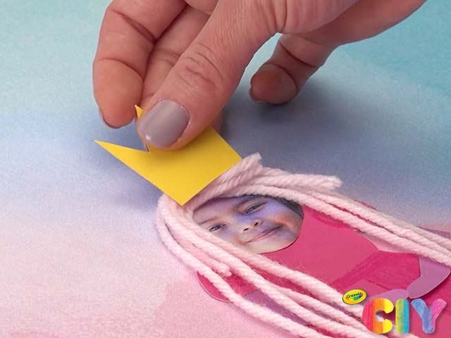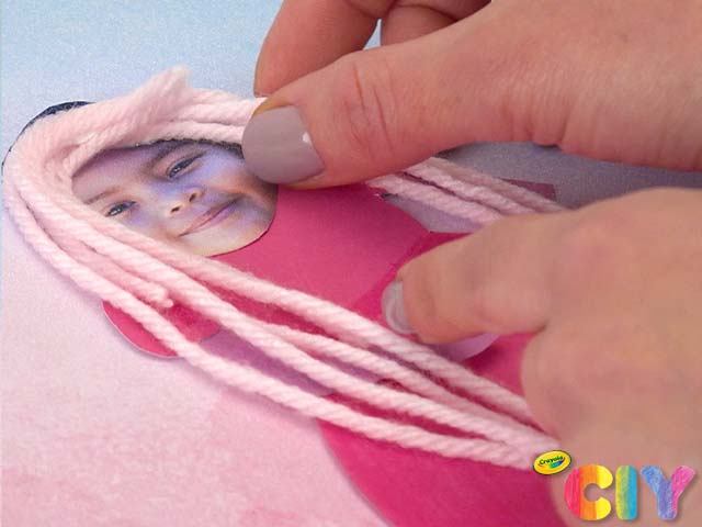 Glue yarn to photo of child to create hair.