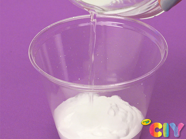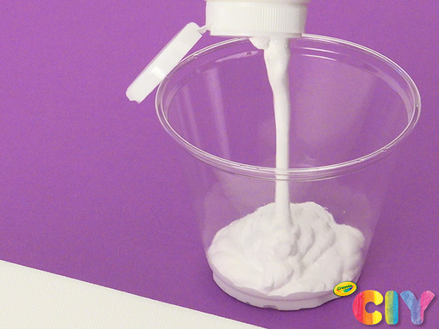 Pour white acrylic paint into disposable cup.