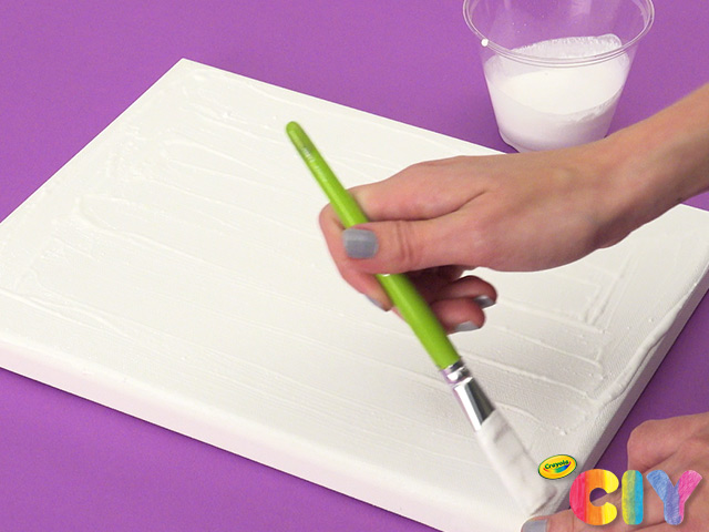 Cover canvas with thin layer of white paint.
