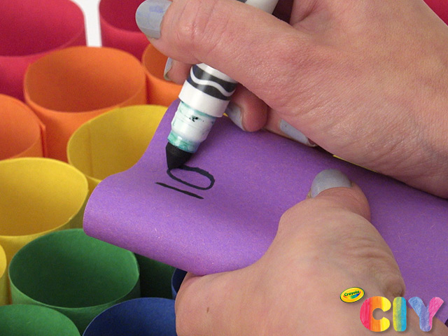 Assign point values to each color tube and write value with marker on front row of the tubes.