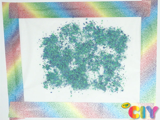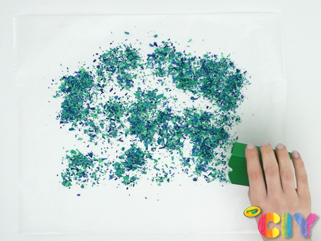 Unwrap 4–6 crayons, then use crayon sharpener to create shavings.