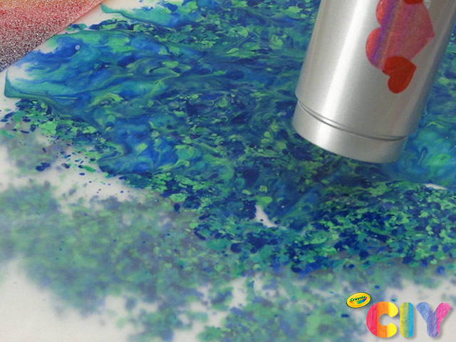 With the help of an adult, use hair dryer to melt shavings. Let cool 15 min.