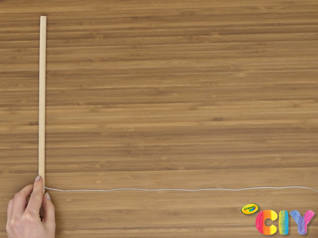 Tie piece of string onto wooden dowel.