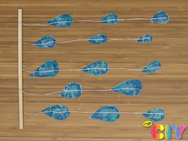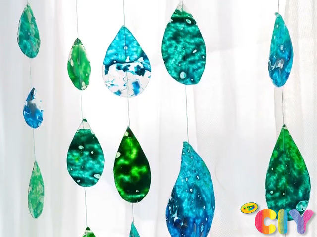 • Try taping your raindrops so they hang at different heights.