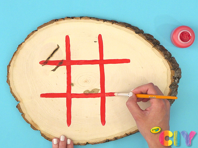Paint tic tac toe board on wood plaque. Dry 1–2 hours.