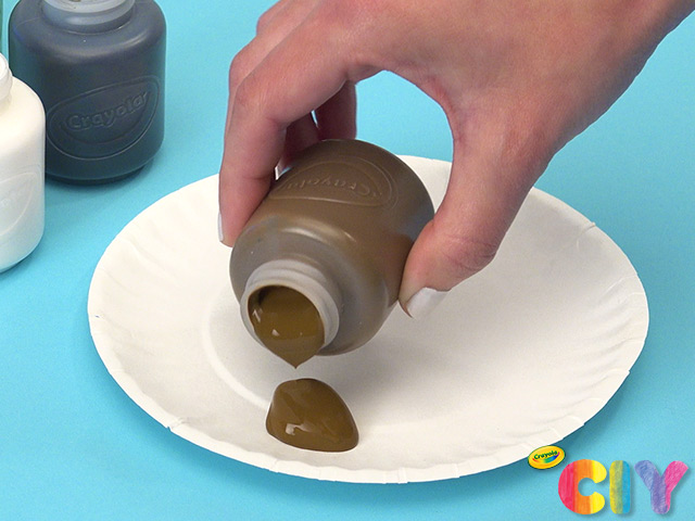 Pour paint colors onto disposable plate.