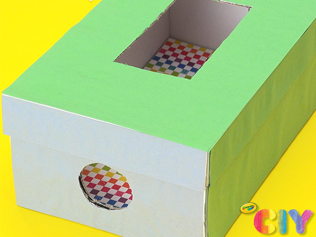 Trim and glue construction paper to lid and sides of box.