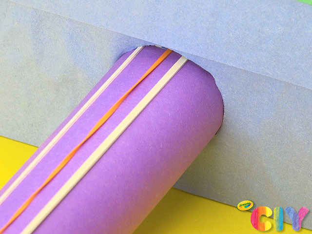 Stretch 3 rubber bands around length of paper towel roll.