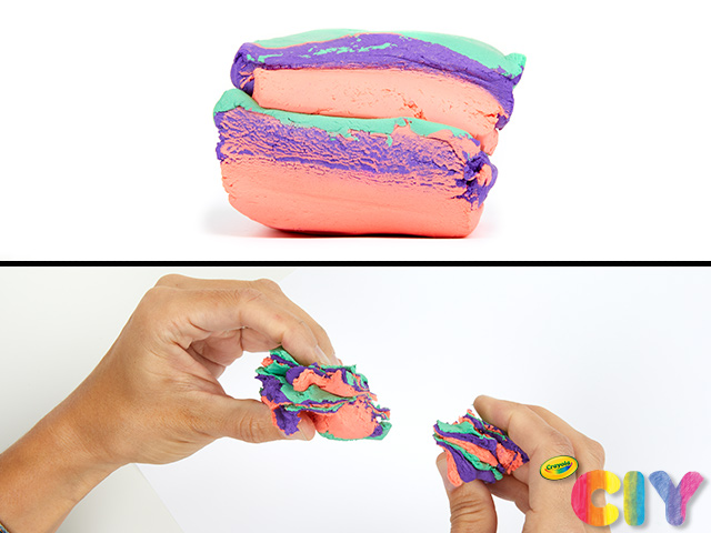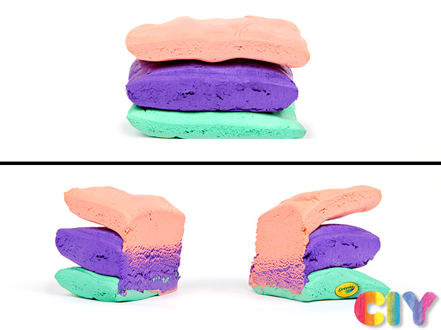 Stack the 6 pieces together. Pull apart and stack 2–3 more times.