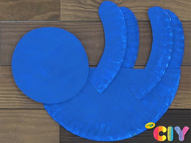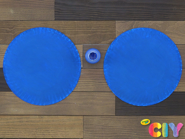 Turn 2 paper plates upside-down and paint. Dry 1–2 hours. Add second coat. Dry 1–2 hours.