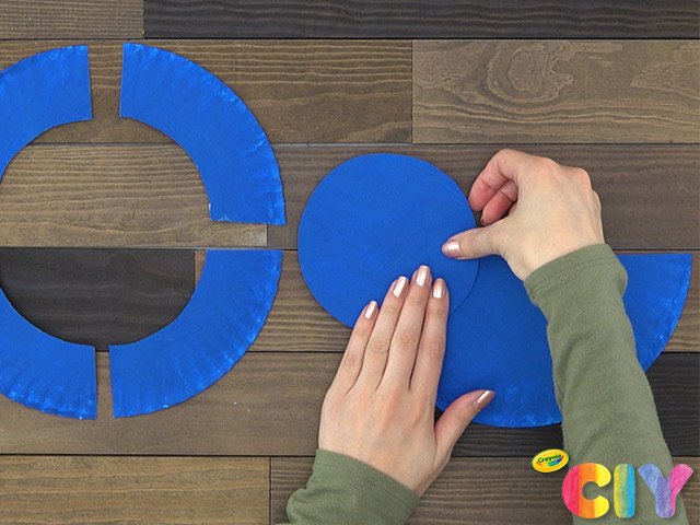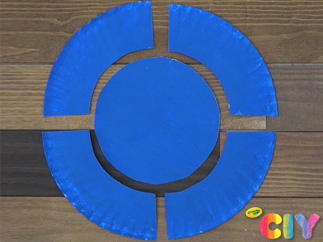 Plate 1: Cut out center of plate. Cut rim of plate into 4 equal sections.