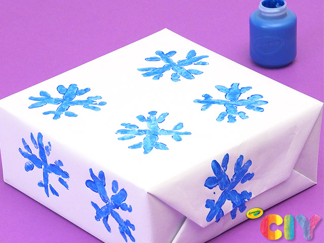 Lightly paint snowflake shape and press onto gift wrap.