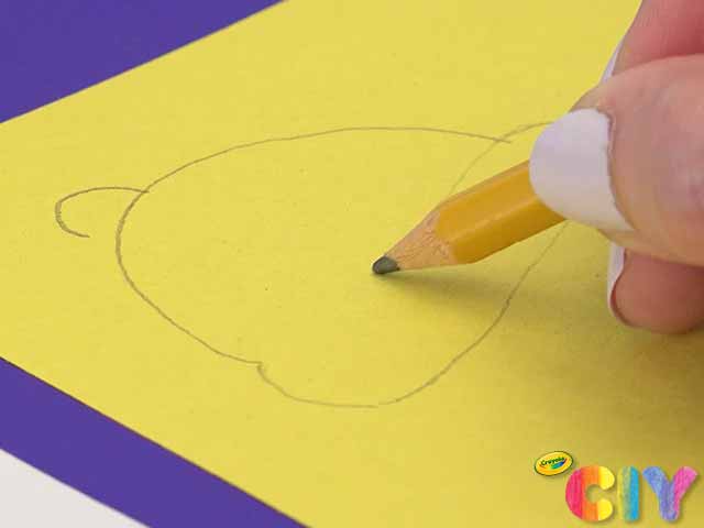 Sketch snowman body, feet, and 4 thin strips on white construction paper. Cut out.
