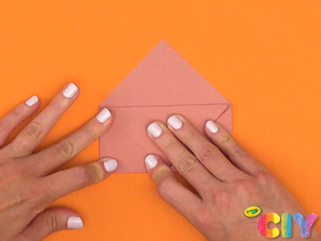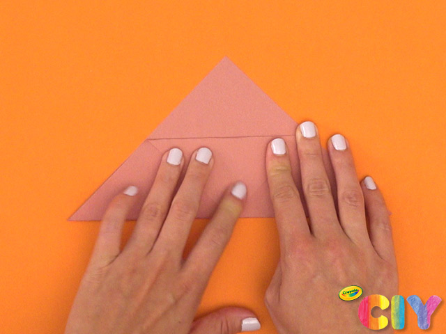 Fold down top sheet (so tip of the triangle touches base) and crease.