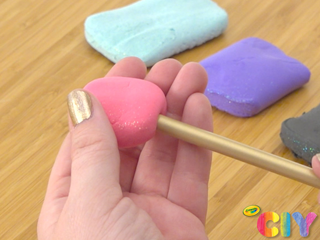 To make a topper, roll a 1” piece of Model Magic into a ball, then gently press down to flatten.