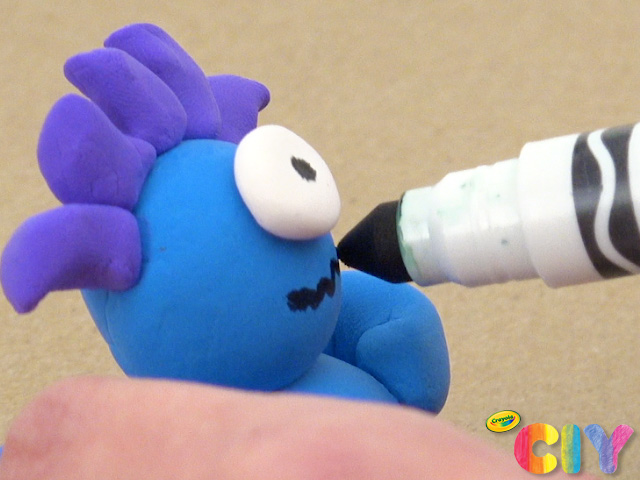 • Beyond markers, use Crayola Glitter Glue to add shimmery accents to Model Magic.