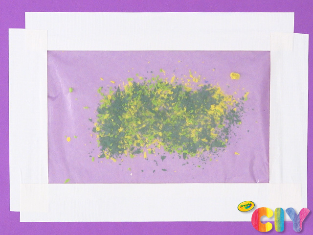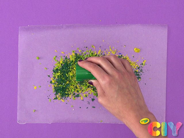 Unwrap 2–6 crayons, then use crayon sharpener to create shavings.
