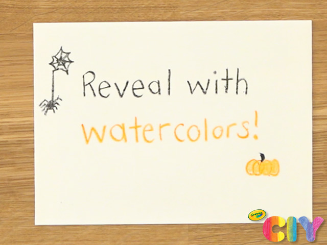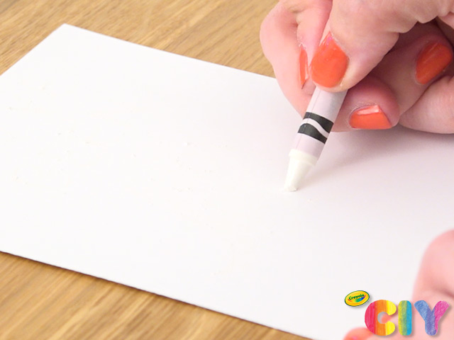 Place in envelope labeled “Paint enclosed card with Crayola Watercolors to reveal a secret message!”