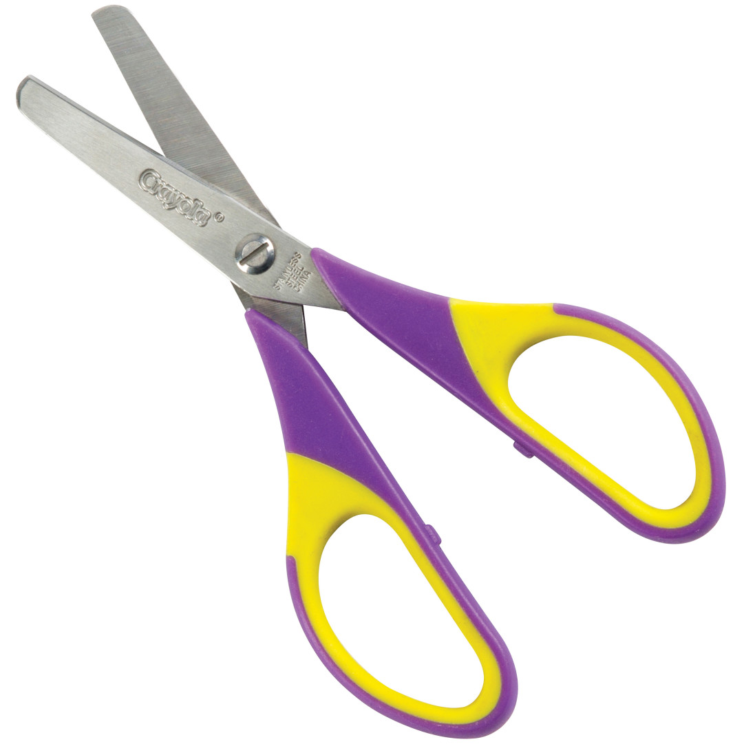 • Crayola Blunt Tip Scissors are perfect for new learners, helping children safely discover how to hold and use scissors. The rounded stainless steel blades cut smoothly through paper, light card, and lightweight fabric, while the uniquely designed handles fit both right- and left-handed children and allow multiple fingers for greater comfort. The self-adjusting design evens out tension, making cutting clean and effortless. Recommended for ages 4 and up.