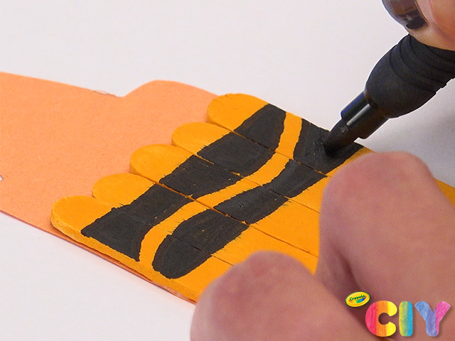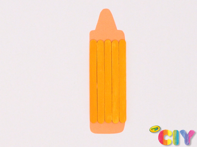 Using craft sticks as a guide, sketch and cut out construction paper crayon.