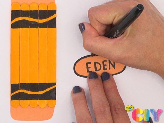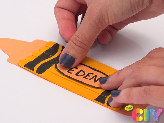 Glue name tag to craft sticks. Let all glue steps dry 1–2 hours.