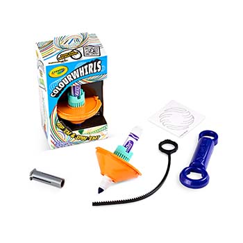 Crayola Colourwhirls Arena is a whirlwind of creativity and competition that includes 4 Colourwhirl toys and a spacious arena with a reusable surface that wipes clean.