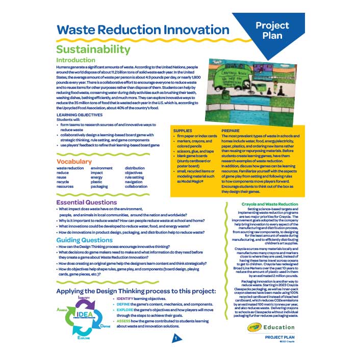 Explore our collection of educational project plans designed to inspire creativity and hands‑on learning. Each plan offers step‑by‑step guidance, helpful tips, and engaging activities that support art‑infused learning across subjects and grade levels. These resources help educators, parents, and students spark curiosity and bring creative ideas to life.