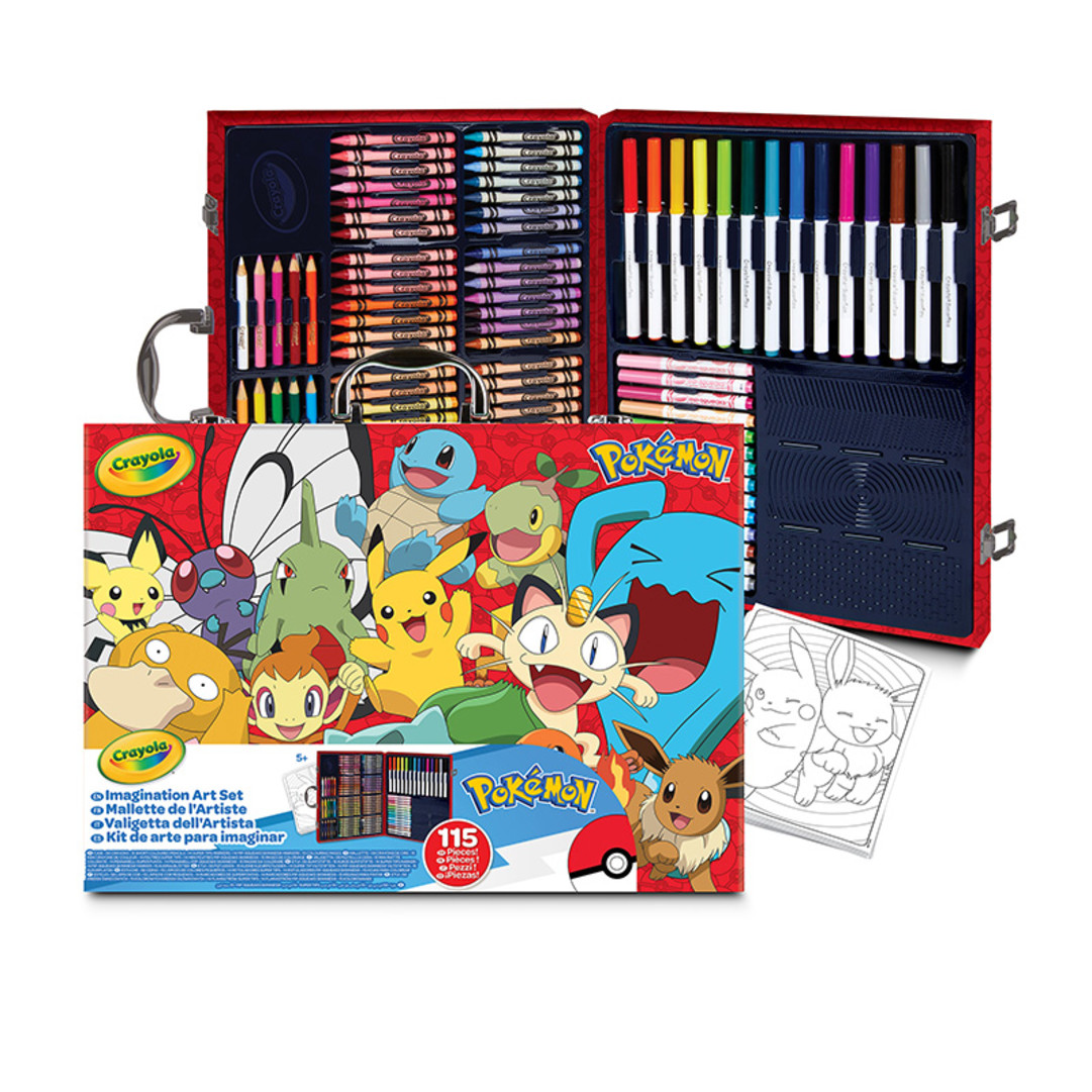 • Crayola: creatività e immaginazione. Materiali, strumenti, attività e giocattoli pensati per stimolare e per coltivare la creatività e che consentono ai bambini, principale motivo di ispirazione della filosofia Crayola, di dare forma alla loro immaginazione. La magia dei Pokémon racchiusa in una preziosa valigetta creativa! Con una pratica maniglia e ben 115 strumenti artistici, questo set offre tutto il meglio dei prodotti coloring Crayola: pennarelli lavabili, pastelli a cera, matite colorate e scenette da colorare con Pikachu e i suoi amici. Perfetto per scatenare la fantasia e dare vita a mondi straordinari, è il regalo ideale per piccoli artisti e fan dei Pokémon! Prodotto indicato a partire da 5 anni- Non adatto a bambini di età inferiore a 36 mesi- Da utilizzare sotto la supervisione di un adulto