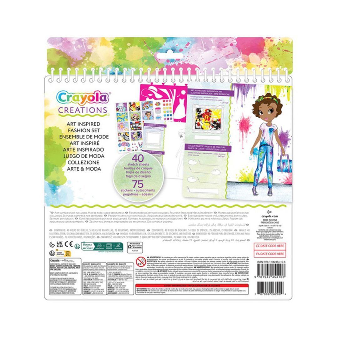 • Crayola Creations è la linea dedicate alle bambine a partire da 8 anni che permette loro di creare, esprimersi e personalizzare il loro mondo in maniera originale e creativa. Album che permette di creare favolosi look ispirati ai grandi movimenti della storia dell'arte Basta scegliere lo stencil più adatto e tracciare la sagoma dei vestiti e degli accessori, colorarli eabbinare poi gli adesivi per completare il look.