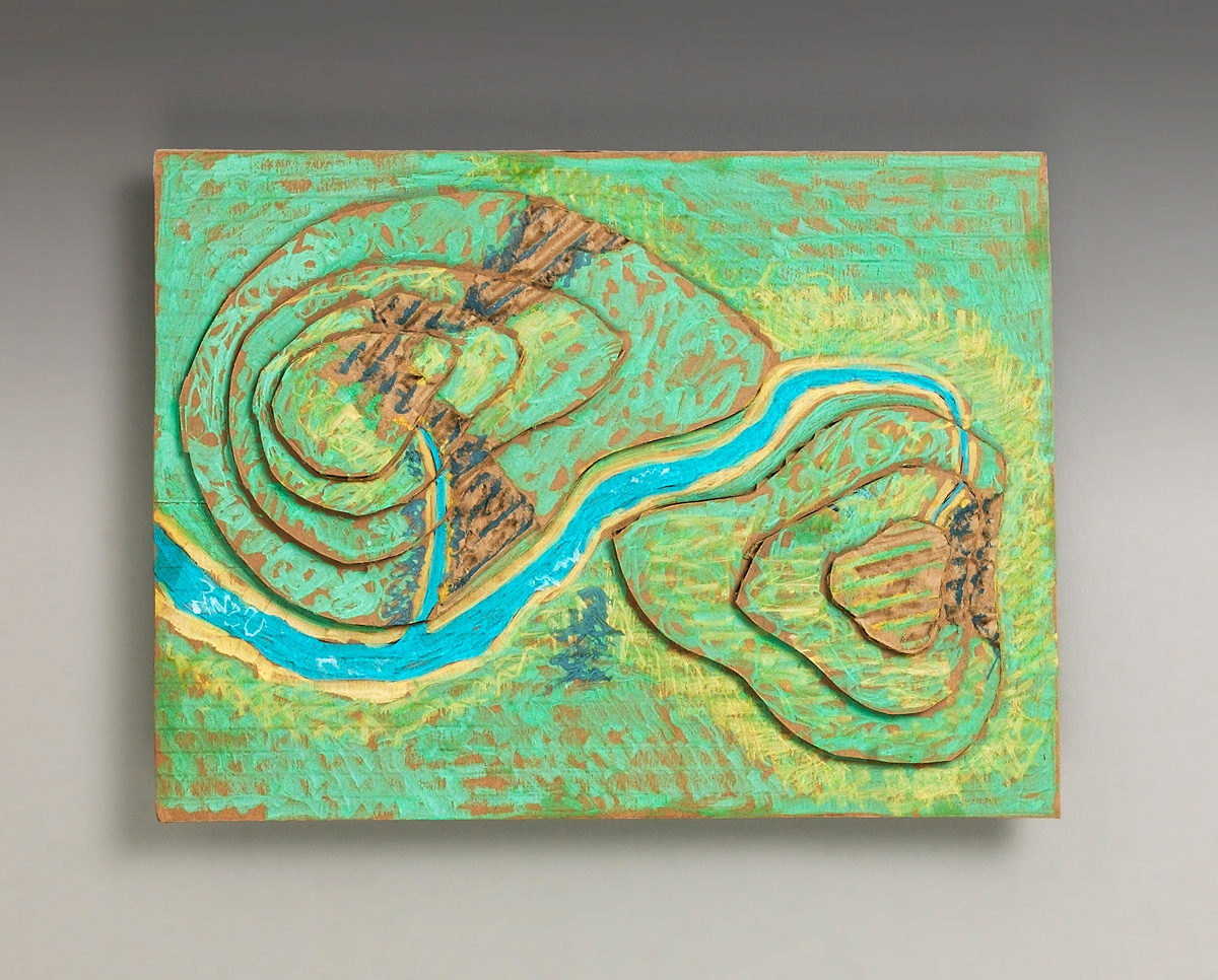 Ask students to cut cardboard shapes and layer them to show height. They can carve away parts of the base to show indentations where rivers and lakes are. Waterways might be filled with blue paper. They can use markers to color or embellish the background and focal areas to depict what types of terrain are there.