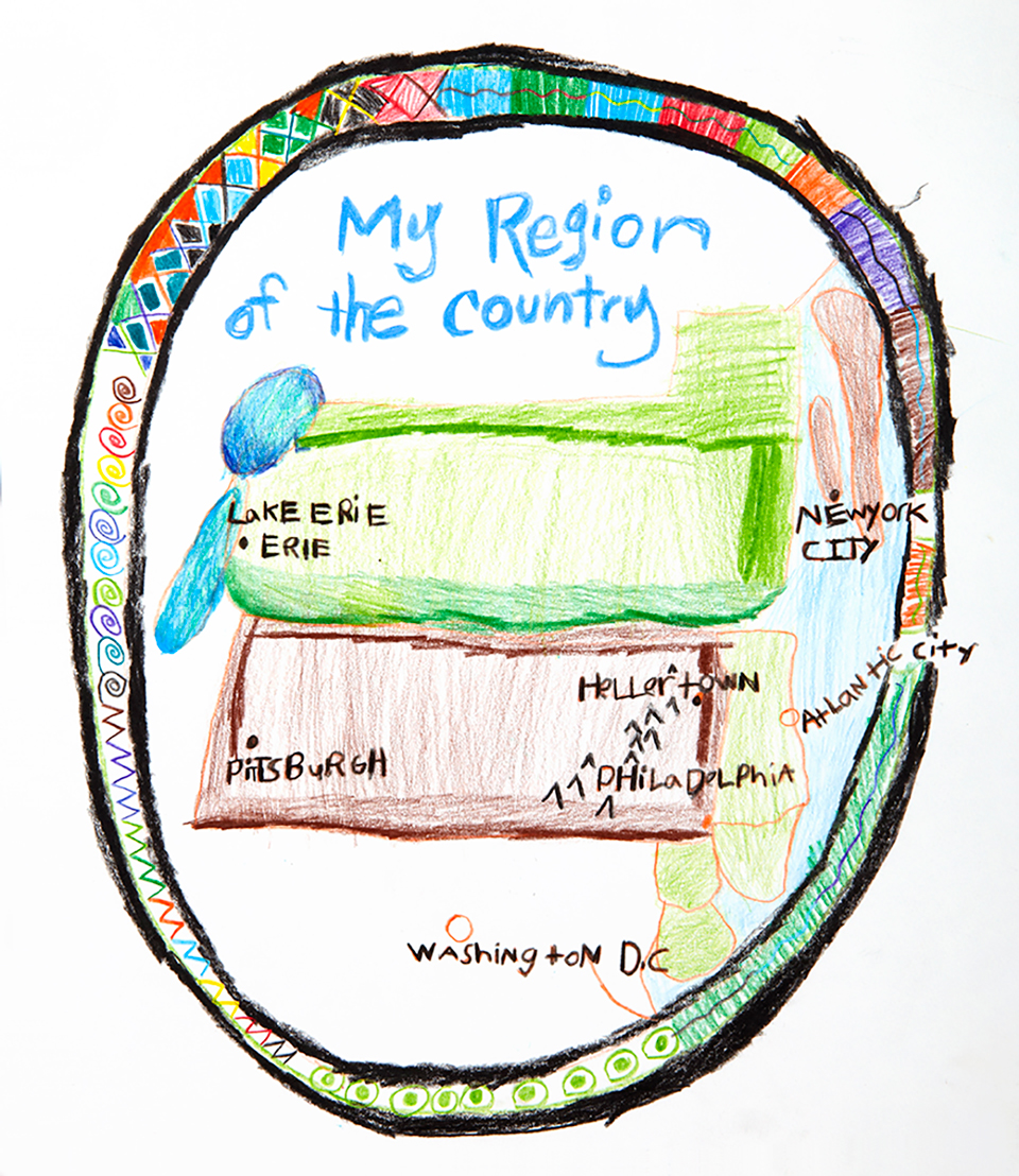 Show off your knowledge of geography as you pretend to be an extraterrestrial creature! Draw several states and landmarks as they might appear from a spacecraft window.
