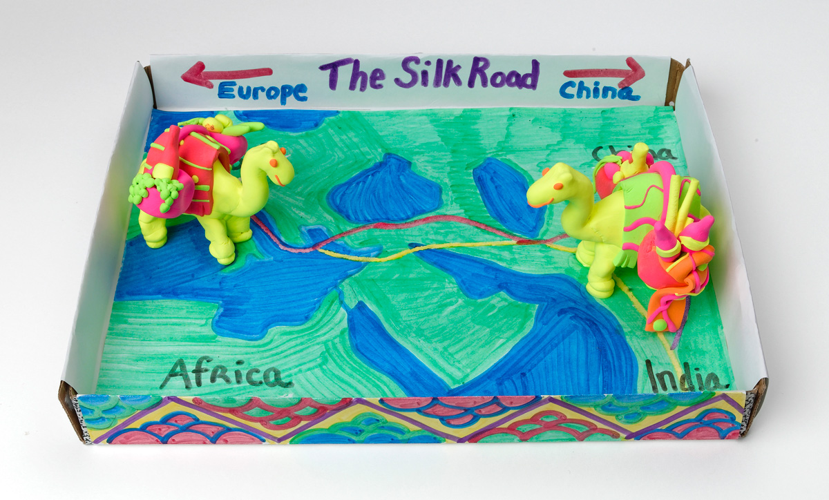 Have students create a diorama depicting regions of the Silk Road. They can create a base using markers on construction paper and then gluing the paper to the bottom of a recycled box. Then they can make characters, items to trade, travelers, and embellishments out of Model Magic.