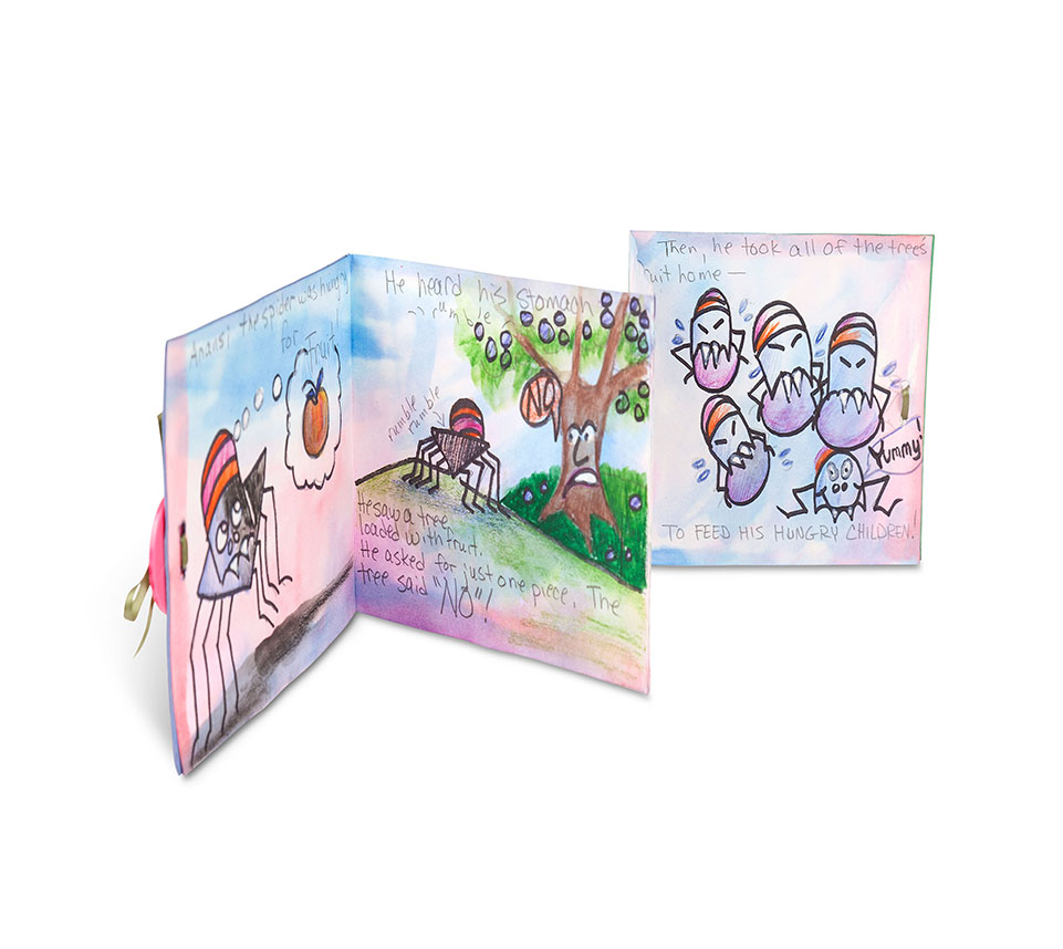 Anansi the spider is an African folklore character. Spin your own Anansi story and capture it in an accordion-style-book.