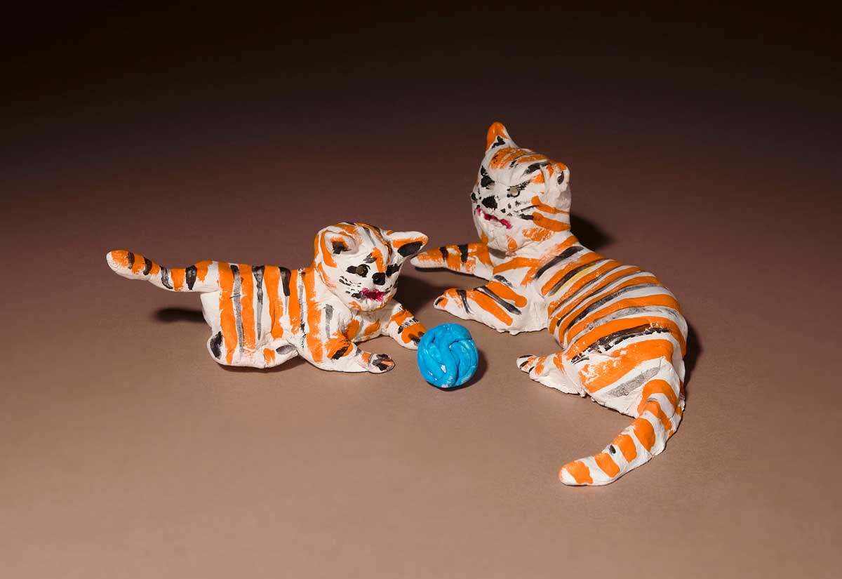 Have students craft an adult and baby animal of their choice out of air dry clay. They can use their fingers to gently pinch a head into place or roll a small ball of clay and attach it to the body. They can also do this for limbs, whiskers, a tail, quills, or other features if needed. Have them use a toothpick or craft stick to form facial and other features. When it's dry they can paint their animals.