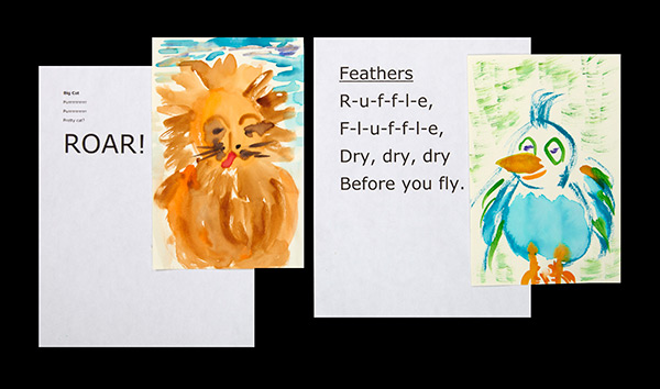 While their art is drying, prompt the students to write down some words they associate with their animal and then to come up with some rhymes for those words. Encourage them to be creative with their spelling and rhyming, just as Florian is.