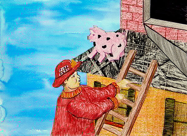 Creative writing meets artful illustrations as students write a fanciful story and convey it in a drawing.