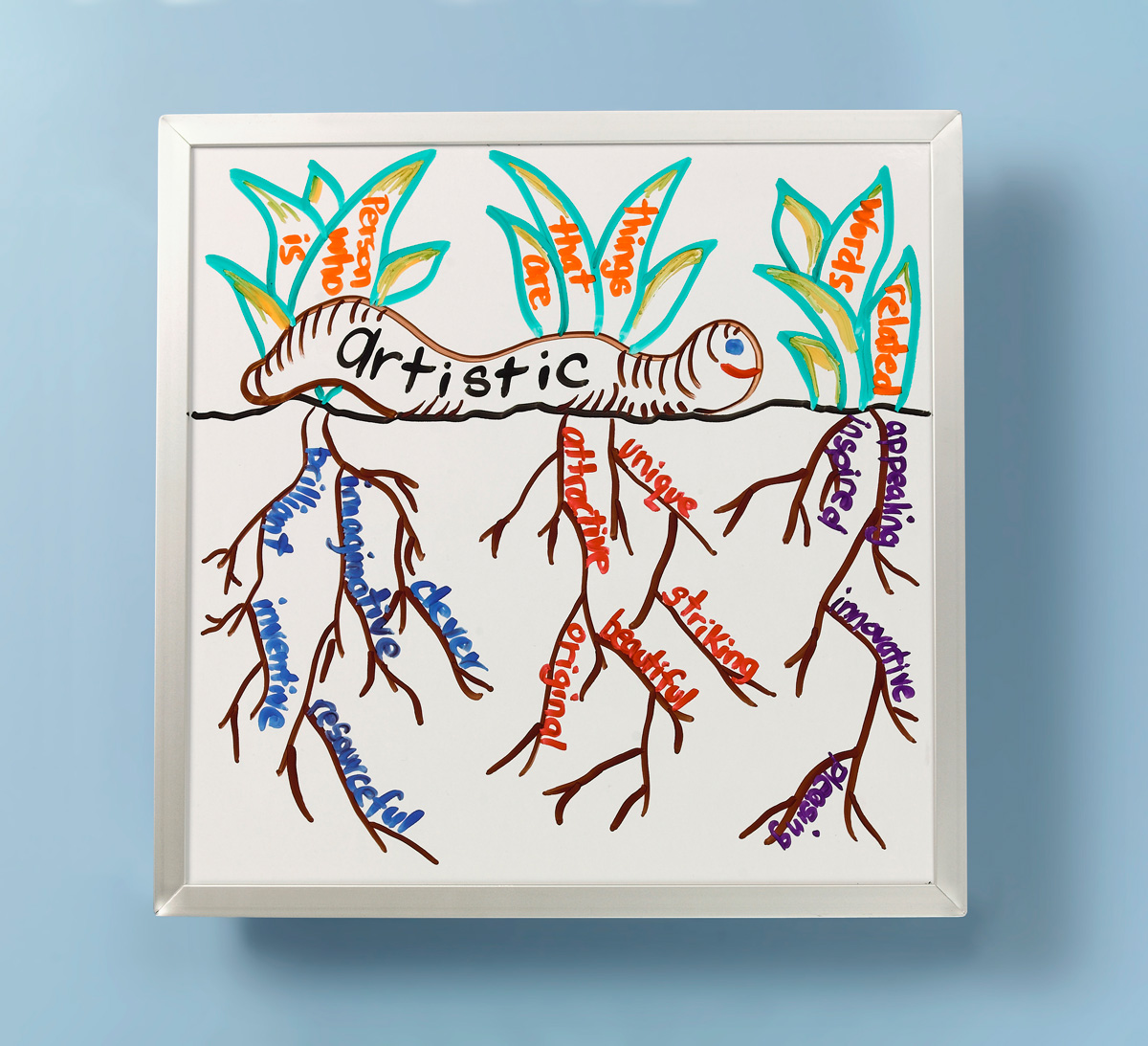 Have students create a viusal that displays the many ways the word "artistic" can be applied. They can base the image on a theme of growth and underground roots as they convey their ideas in words and/or images. They might write synonyms for the word artistic, one on each branch of a root. On the leaves or buds above the ground they might write prompts or the names of artistic endeavors or art media.